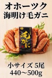 【クール冷蔵】北海道オホーツクの毛ガニ 小サイズ(440~500g)5尾セット 雄武沖 黒ラベル