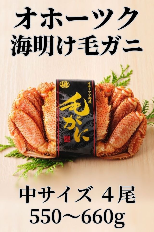 【クール冷蔵】北海道オホーツクの毛ガニ 中サイズ(570~660g)4尾セット 雄武沖 黒ラベル