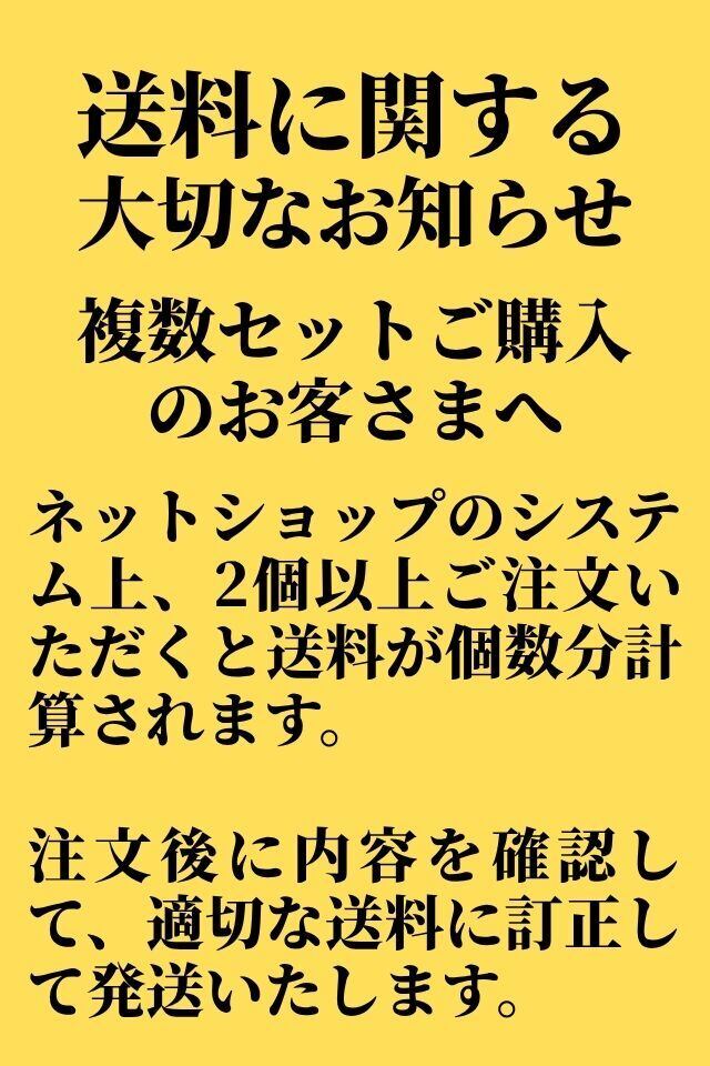 ※BASEショップの仕様上、商品を複数ご注文いただいた場合個数分の送料がかかりますが、後ほど配送サイズや個数に応じた送料に変更いたします。